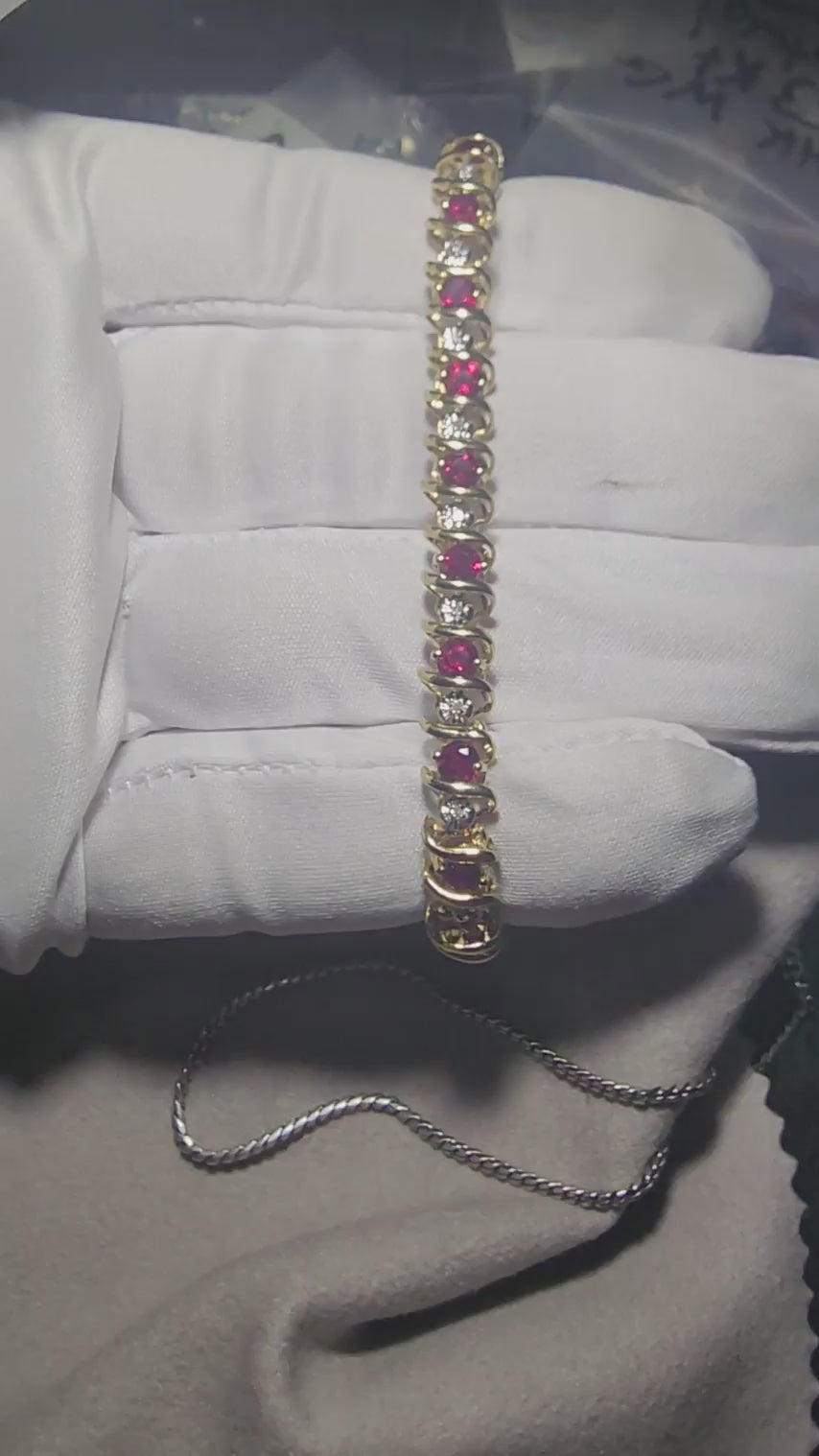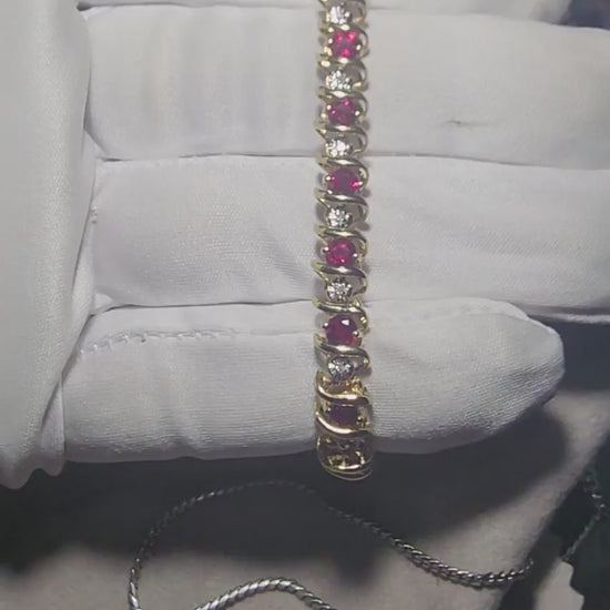 This 7-inch 10K gold tennis bracelet features alternating rubies and diamonds for a bold, elegant look. Weighing 12.0 grams, it’s a timeless piece of fine craftsmanship.